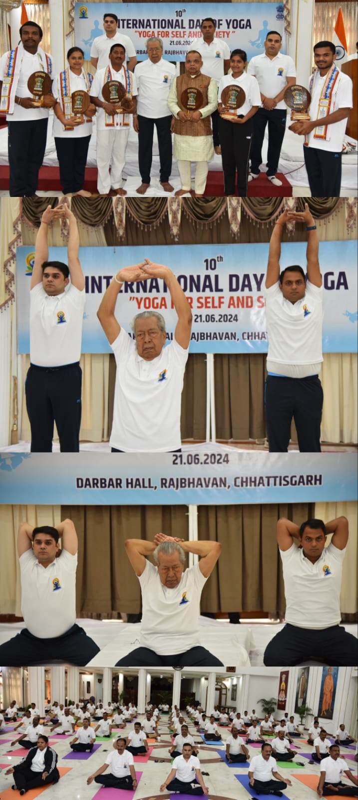 योगाभ्यास में राज्यपाल के सचिव यशवंत कुमार, विधिक सलाहकार राजेश श्रीवास्तव, उपसचिव हिना अनिमेष नेताम सहित राजभवन के अधिकारी, कर्मचारी शामिल हुए। योग प्रशिक्षक अशोक साहू, आनंद साहू, भोजराज साहू के नेतृत्व में उनकी टीम ने राजभवन में योगाभ्यास कराया।