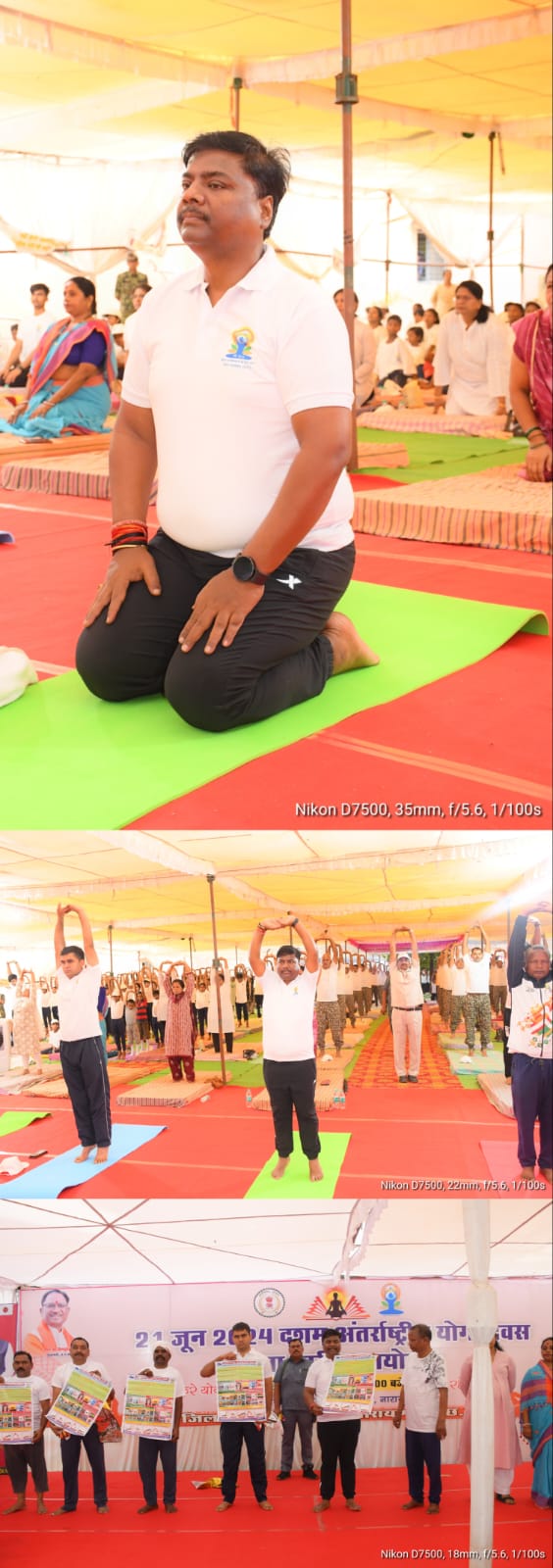 अंतर्राष्ट्रीय योग दिवस के अवसर पर मंत्री श्री कश्यप ने लोगों से आग्रह किया कि वे योग को अपनी दिनचर्या में शामिल करें और तन और मन को स्वस्थ एवं नीरोग रखें। योग कार्यक्रम में योग प्रदर्शक शिक्षक के रूप में डॉ. बीना खोबरागडे़, ओम कुमार मांझी, अनिल ध्रुव और कुमारी सरस मनी पटेल एवं उद्घोशक के रूप में नारायण साहू उपस्थित थे। योग शिक्षकों द्वारा योग कार्यक्रम में ताड़ासन, कटिचक्रासन, सेतुबंध आसन, भुजंगआसन, सलभआसन, पवनमुक्तासन, पादहस्तआसन, हलासन, उत्तानपादआसन, बज्रआसन, वक्रासन, उश्ट्रासन, प्राणायाम के तहत् कपालभाति, अनुलोम विलोम इत्यादि आसन कराए गये और इससे जीवन में होने वाले फायदों के बारे में भी बताया गया।