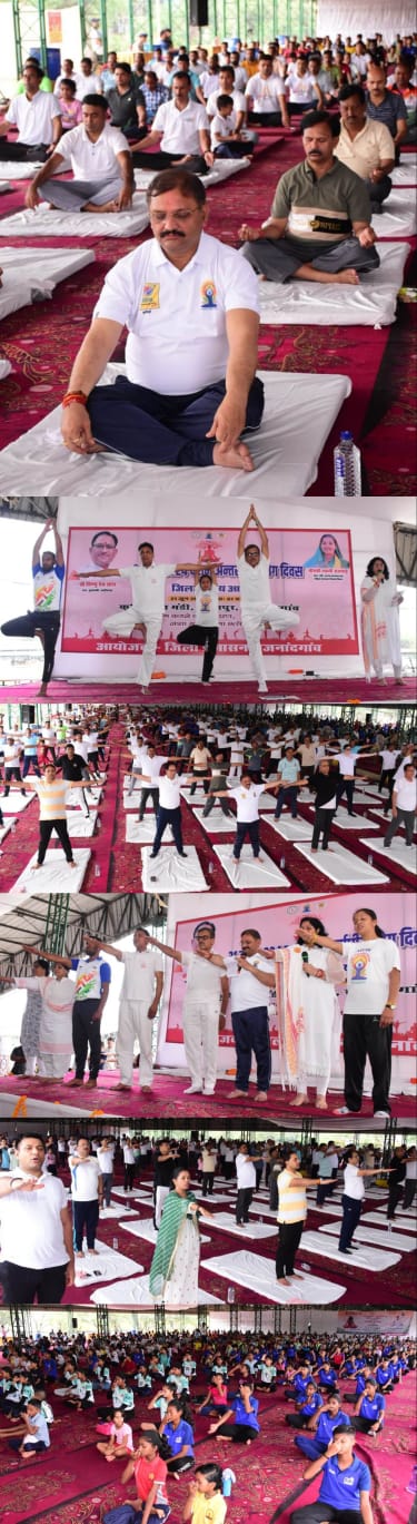 जिला कलेक्टर संजय अग्रवाल ने कहा कि योग न केवल तन को बल्कि मन को भी शारीरिक और मानसिक तौर पर मजबूत बनाता है। योग को अपने जीवन शैली में शामिल करें और दूसरों को भी प्रेरित करें, ताकि चिन्ता एवं तनाव से दूर रह सकें। पुलिस अधीक्षक श्री मोहित गर्ग ने कहा कि योग को सिर्फ आज एक दिन तक सीमित न रखें। प्रतिदिन समय निकालकर योग अवश्य करें।