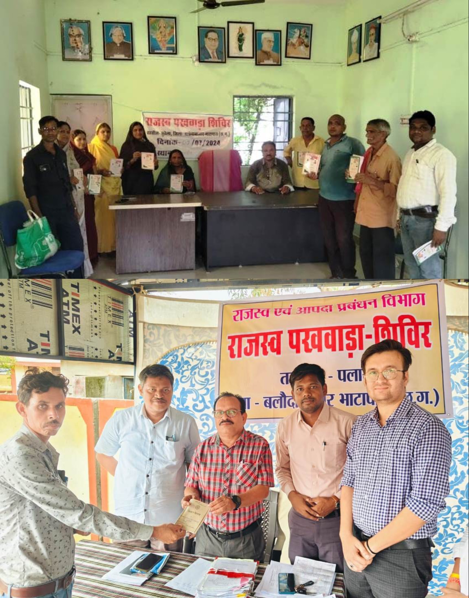 अनुविभाग अनुसार बलौदाबाजार में बी-1 पठन 40, फौती नामांतरण-51, बंटवारा-9, अभिलेख त्रुटि सुधार-20, किसान किताब-35, आय,जाति, निवास-2342 एवं अन्य-123आवेदन शामिल है। पलारी में बी-1 पठन 70, फौती नामांतरण-17, बंटवारा-9, अभिलेख त्रुटि सुधार-36, किसान किताब-12, आर बी सी 6-4 के 1 आय,जाति, निवास-575 एवं अन्य-27 आवेदन शामिल है। भाटापारा में बी-1 पठन 42, फौती नामांतरण-45, बंटवारा-4, अभिलेख त्रुटि सुधार-3, किसान किताब-12, आय,जाति, निवास-586 एवं अन्य-30 आवेदन शामिल है। सिमगा में बी-1 पठन 37, फौती नामांतरण-19, बंटवारा-5, अभिलेख त्रुटि सुधार-8, किसान किताब-12, आरबीसी 64 के 1 आय,जाति, निवास-679 एवं अन्य-57 आवेदन शामिल है। कसडोल में बी-1 पठन 21, फौती नामांतरण-10, बंटवारा-6, अभिलेख त्रुटि सुधार-1, किसान किताब-23, आय,जाति, निवास-569 एवं अन्य-27 आवेदन शामिल है। गिरौद में बी-1 पठन 31, फौती नामांतरण-11, बंटवारा-10, अभिलेख त्रुटि सुधार-4, किसान किताब-14, आय,जाति, निवास-852 एवं अन्य-24 आवेदन शामिल है। उक्त शिविर में राजस्व अधिकारी एसडीएम, तहसीलदार, नायब तहसीलदार सहित पटवारी, कोटवार, सरपंच सचिव की लगातार उपस्थिति रही।