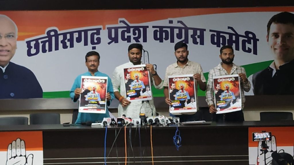 रायपुर। भारतीय युवा कांग्रेस ने आज “नौकरी दो नशा नहीं”-हल्ला बोल प्रदर्शन का पोस्टर लॉन्च किया. छत्तीसगढ़ युवा कांग्रेस के प्रदेश अध्यक्ष आकाश शर्मा ने प्रेस वार्ता के दौरान इस पोस्टर को लॉन्च किया. उन्होंने मीडिया को संबोधित करते हुए कहा कि केंद्र की मोदी सरकार के खिलाफ युवाओं को नौकरी के नाम पर ठगने और नशे की ओर धकेलने के विरोध में भारतीय युवा कांग्रेस हल्ला बोल प्रदर्शन करने जा रही है.