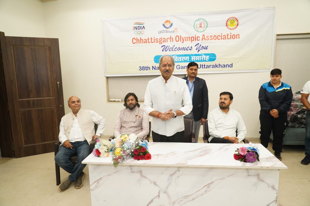 रायपुर। छत्तीसगढ़ ओलंपिक संघ के उपाध्यक्ष एवं सांसद बृजमोहन अग्रवाल ने उत्तराखंड में चल रहे 38वें नेशनल गेम्स में भाग लेने जा रही राज्य की विभिन्न खेल टीमों को किट वितरण कर खिलाड़ियों को उत्कृष्ट प्रदर्शन हेतु शुभकामनाएं दीं। इस अवसर पर उन्होंने कालिरियपायट्टू में गोल्ड मेडल जीतने वाली प्रदेश की खिलाड़ी को मिशा सिंधु को बधाई देते हुए इसे छत्तीसगढ़ के लिए गर्व का क्षण बताया।