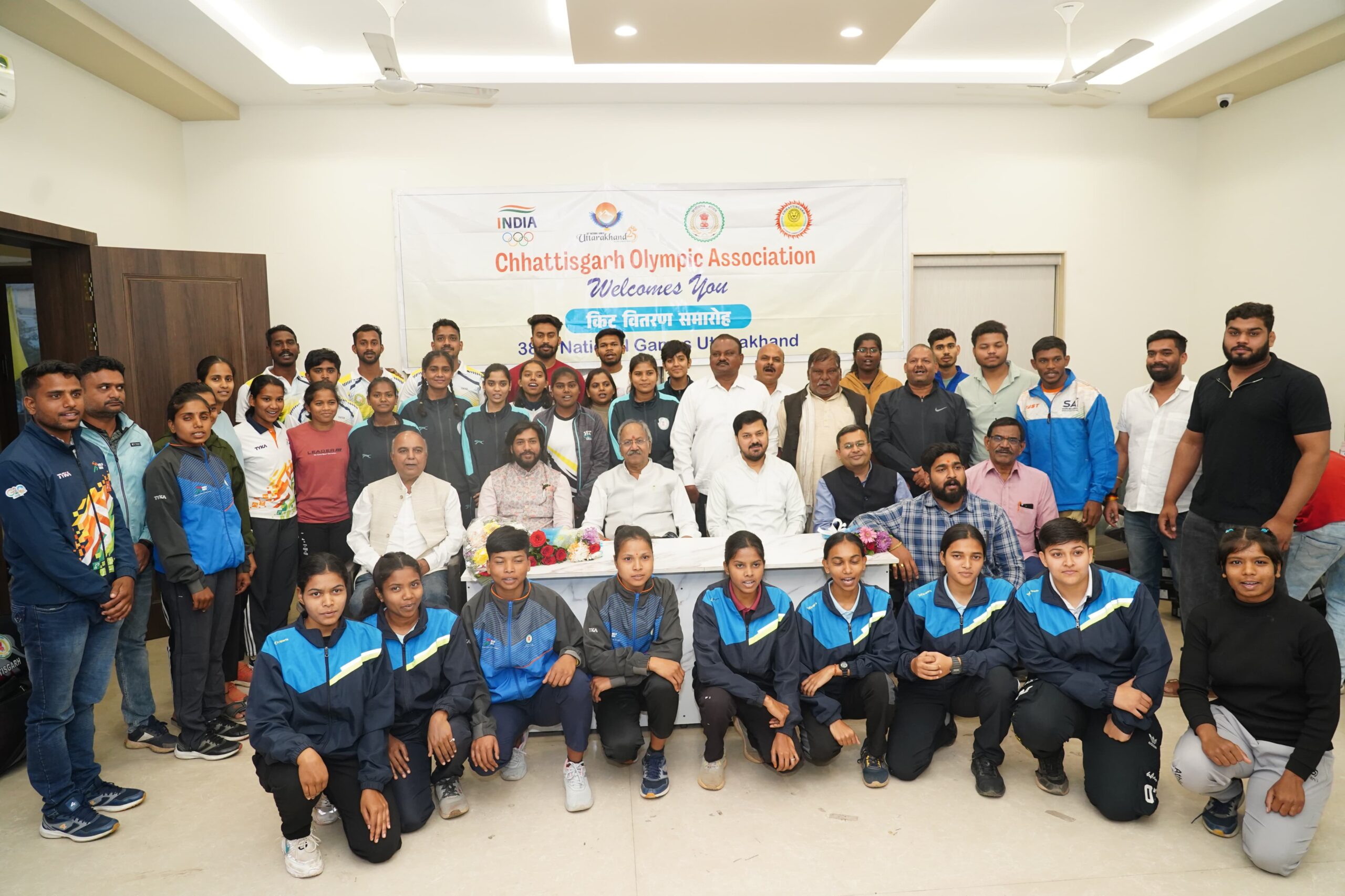 कार्यक्रम में हैंडबॉल, कबड्डी महिला, जूडो, कुश्ती, एथलेटिक्स, फेंसिंग और जिम्नास्टिक्स के खिलाड़ियों को किट वितरित की गई।