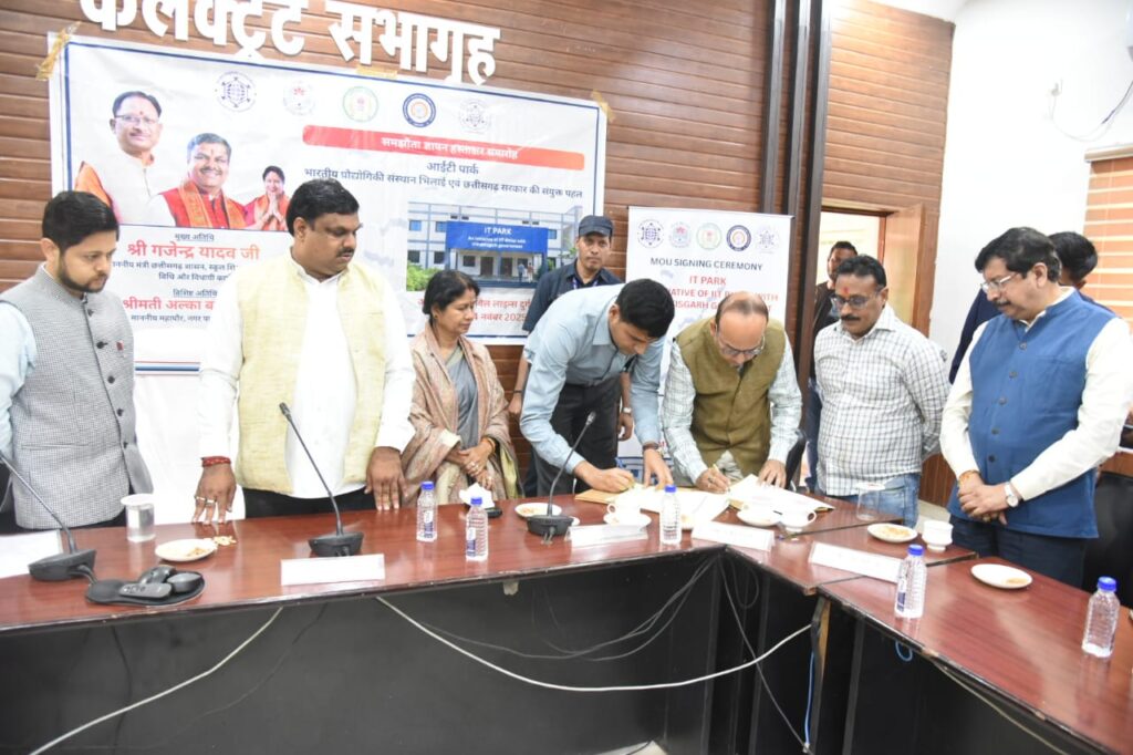 रायपुर। दुर्ग जिला अब आईटी और टेक्नोलॉजी सेक्टर में एक नए युग की शुरुआत करने जा रहा है। जिले के पहले आईटी पार्क की स्थापना हेतु आज आईआईटी भिलाई और छत्तीसगढ़ सरकार के बीच महत्वपूर्ण समझौता ज्ञापन (डवन्) पर हस्ताक्षर किए गए। यह आईटी पार्क सिविल लाइंस क्षेत्र में 3 हजार 900 वर्ग मीटर भूमि पर विकसित किया गया है, जिसमें 2,907.26 वर्ग मीटर निर्मित क्षेत्र शामिल है। कार्यक्रम में स्कूल शिक्षा मंत्री गजेन्द्र यादव, महापौर अलका बाघमार, नगर निगम, आईआईटी भिलाई और जिला प्रशासन के वरिष्ठ अधिकारी उपस्थित रहे।