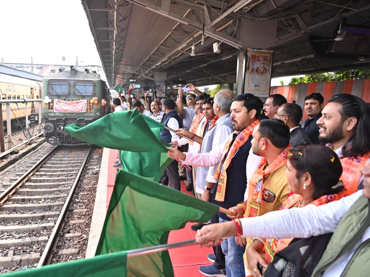 रायपुर। रायपुर सांसद एवं वरिष्ठ भाजपा नेता बृजमोहन अग्रवाल ने बुधवार को रायपुर रेलवे स्टेशन से ‘श्री राम लला दर्शन योजना’ के तहत श्रद्धालुओं से भरी विशेष ट्रेन को अपार उत्साह, उमंग और गहन आध्यात्मिक वातावरण के बीच अयोध्या धाम के लिए हरी झंडी दिखाकर रवाना किया।