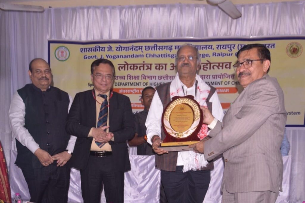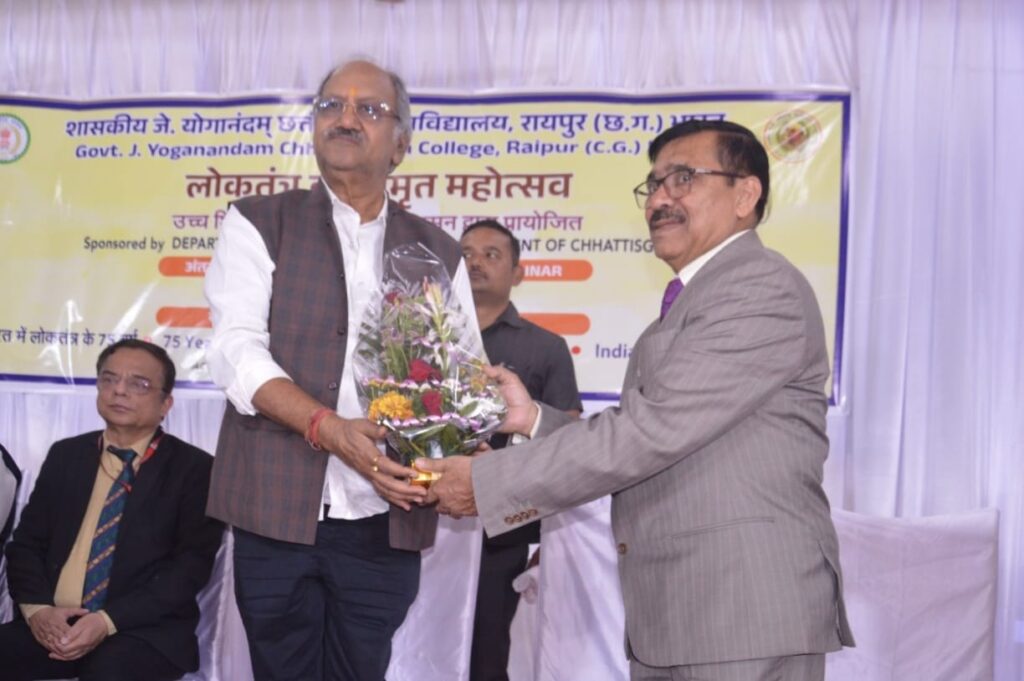 रायपुर। वरिष्ठ भाजपा नेता एवं सांसद बृजमोहन अग्रवाल ने शासकीय जे. योगानंदम् छत्तीसगढ़ महाविद्यालय में “भारत में लोकतंत्र के 75 वर्ष एवं भारतीय ज्ञान परंपरा” विषय पर आयोजित तीन दिवसीय अंतर्राष्ट्रीय शोध संगोष्ठी का शुभारंभ किया।