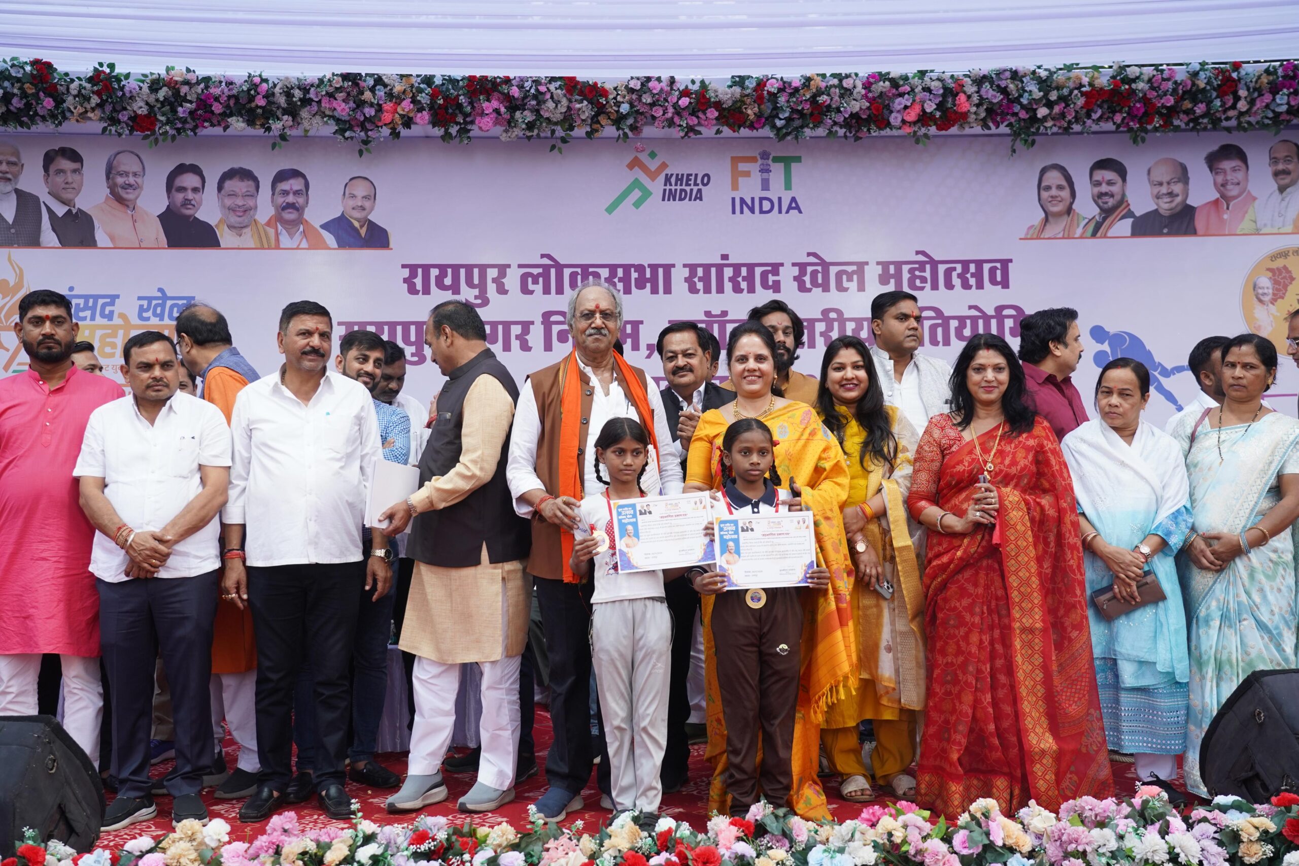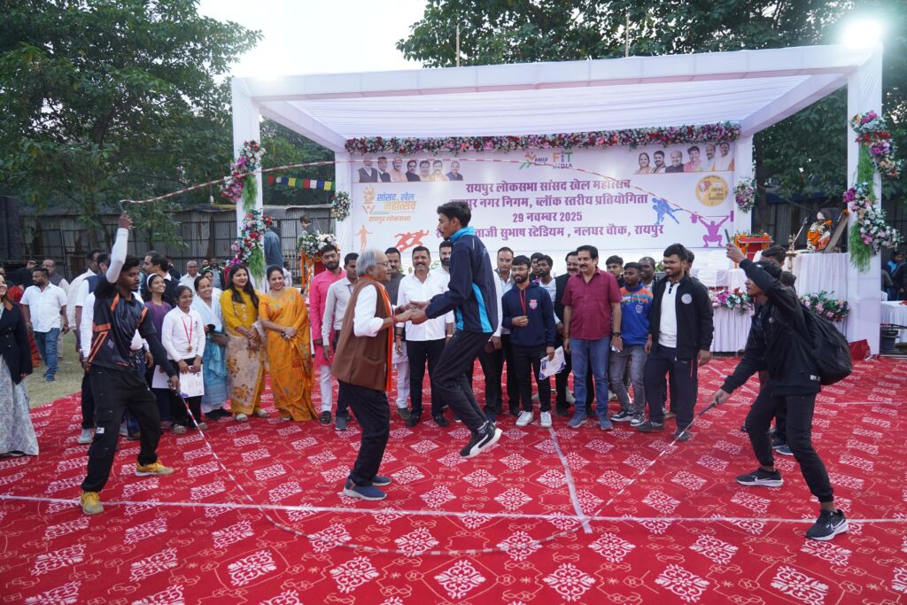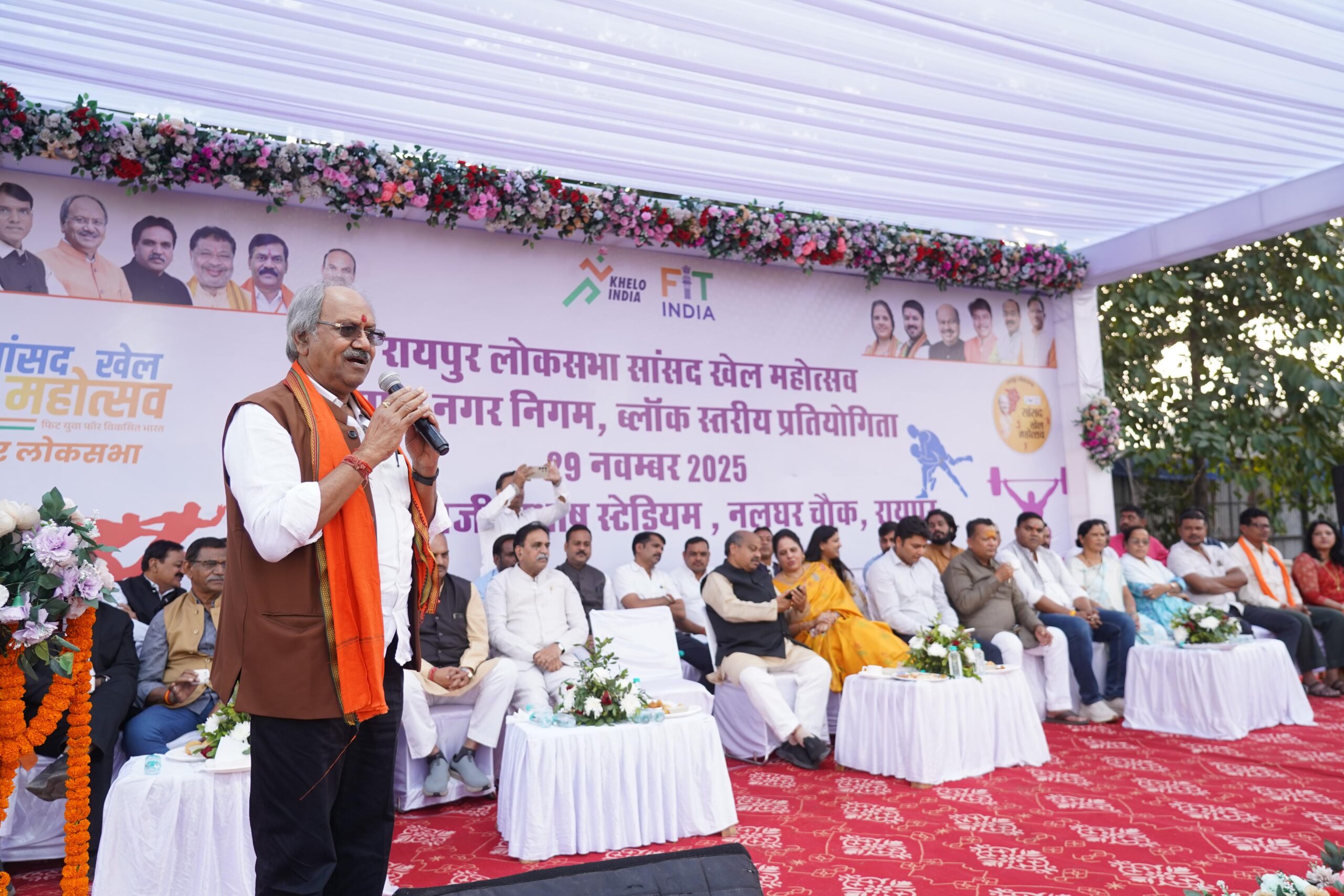 रायपुर। राजधानी के सुभाष स्टेडियम में आज “हम खेलेंगे, तो भारत खेलेगा” के प्रेरक संदेश के साथ लोकसभा सांसद खेल महोत्सव का भव्य, अनुशासित और उत्साहपूर्ण आयोजन सम्पन्न हुआ। सांसद एवं वरिष्ठ भाजपा नेता बृजमोहन अग्रवाल की गरिमामयी उपस्थिति में रायपुर नगर निगम के ब्लॉक स्तरीय प्रतियोगिता ने नए कीर्तिमान गढ़ते हुए हजारों युवाओं में अद्भुत ऊर्जा का संचार किया।इस अवसर पर विधायक एवं पूर्व मंत्री राजेश मूणत, विधायक पुरंदर मिश्रा, महापौर मीनल चौबे भी उपस्थित रहे।