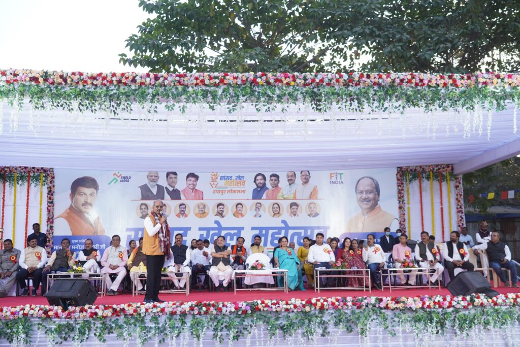 रायपुर। “हम खेलेंगे, हिंदुस्तान खेलेगा” के प्रेरक उद्घोष के साथ राजधानी रायपुर के नेताजी सुभाष स्टेडियम में रायपुर खेल महोत्सव के तीन दिवसीय मेगा फाइनल एवं समापन समारोह का भव्य शुभारंभ हुआ। मुख्य अतिथि सांसद एवं वरिष्ठ भाजपा नेता बृजमोहन अग्रवाल ने दीप प्रज्वलित कर कार्यक्रम का विधिवत उद्घाटन किया।