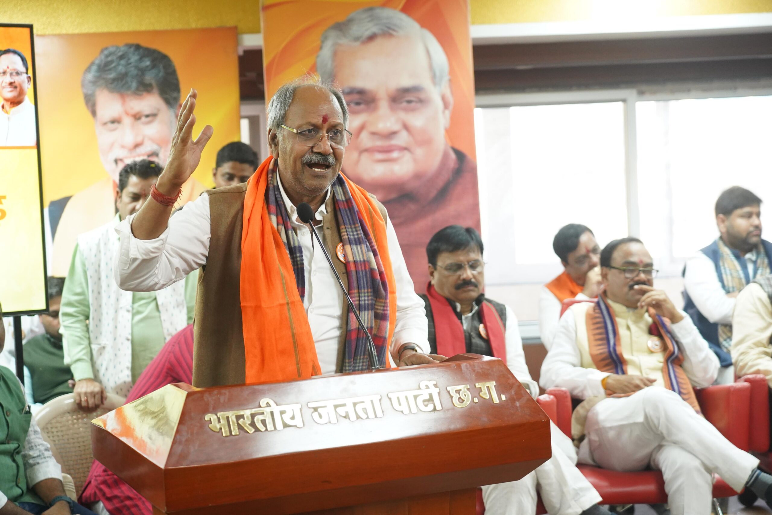 कार्यक्रम में विधायक एवं पूर्व मंत्री राजेश मूणत, विधायक मोतीलाल साहू, सुनील सोनी, महामंत्री अमित साहू , जिला अध्यक्ष रमेश सिंह ठाकुर समेत भाजपा पदाधिकारी और कार्यकर्ता उपस्थित रहे।