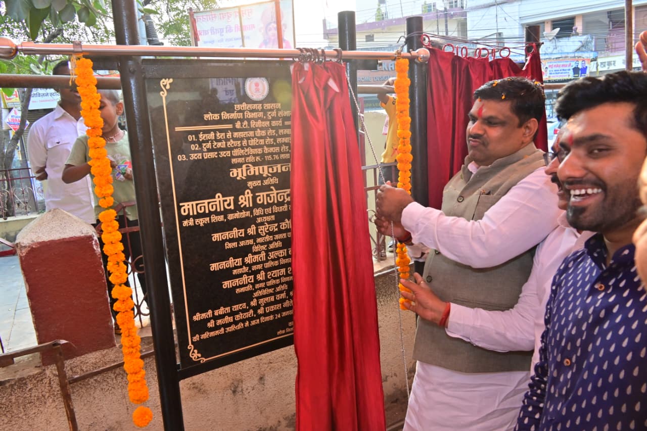 दुर्ग। दुर्ग नगर निगम क्षेत्र के वार्ड क्रमांक 44 में आज विभिन्न विकास कार्यों के भूमिपूजन कार्यक्रम का आयोजन किया गया, जिसमें स्कूल शिक्षा मंत्री गजेंद्र यादव मुख्य अतिथि के रूप में शामिल हुए। उन्होंने वार्ड में प्रस्तावित सड़क निर्माण एवं सामुदायिक भवन सहित अन्य कार्यों का विधिवत भूमिपूजन किया। यह कार्यक्रम दुर्ग को अधिक विकसित, सुदृढ़ एवं नागरिकों के लिए सुगम बनाने की दिशा में एक महत्वपूर्ण पहल के रूप में देखा जा सकता है। कार्यक्रम के दौरान दुर्ग विधानसभा क्षेत्र में कुल ₹115.76 लाख की लागत से तीन प्रमुख डामरीकरण सड़क निर्माण कार्यों की भूपिपूजन किया गया। इनमें ईरानी डेरा से महाराजा चौक तक 1.88 किलोमीटर, दुर्ग टेम्पो स्टैंड से पोटिया रोड तक 3 किलोमीटर तथा पोलिटेक्निक कॉलेज परिसर में 1.20 किलोमीटर लंबी सड़क का निर्माण शामिल है। इसके अतिरिक्त वार्ड में ₹19.30 लाख की लागत से सतनाम भवन तथा ₹9.94 लाख की लागत से सतनाम भवन में अहाता निर्माण का भी भूमिपूजन किया गया। साथ ही नागरिकों की लंबे समय से प्रतीक्षित मांग सामुदायिक भवन के निर्माण कार्य का भी शुभारंभ किया गया।