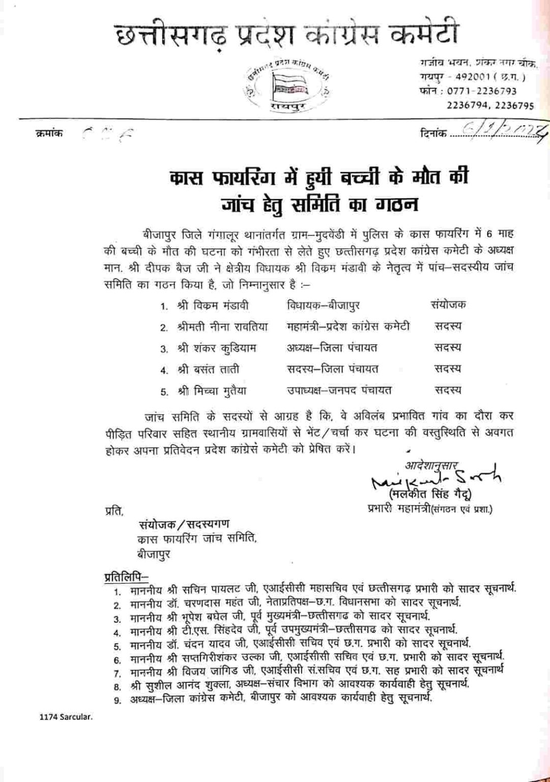 क्रास फायरिंग में 6 माह की बच्ची की हुई मौत, कांग्रेस ने बनाई 5 सदस्यीय जांच समिति