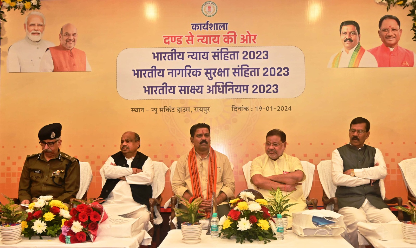 सांसद सुनील सोनी ने कार्यक्रम को सम्बोधित करते हुए कहा कि नये कानून के लागू होने से पीड़ितों को जल्द से जल्द न्याय मिलेगी तथा पुलिस की विश्वसनीयता बढ़ेगी। कार्यशाला में भारतीय न्याय संहिता 2023, नागरिक सुरक्षा संहिता 2023 तथा भारतीय साक्ष्य अधिनियम 2023 के बारे में विस्तार से जानकारी दी गई। जिसमें सदियों से चले आ रहे औपनिवेशिक कानूनों में बदलाव किया गया है। इस अवसर पर विधायकद्वय पुरन्दर मिश्रा और मोतीलाल साहू, पुलिस महानिदेशक अशोक जुनेजा, पुलिस विभाग के वरिष्ठ अधिकारी, अधिवक्तागण, चेम्बर ऑफ कॉमर्स के पदाधिकारी, अनेक जनप्रतिनिधिगण, मीडिया के प्रतिनिधि एवं गणमान्य नागरिक बड़ी संख्या में उपस्थित थे।