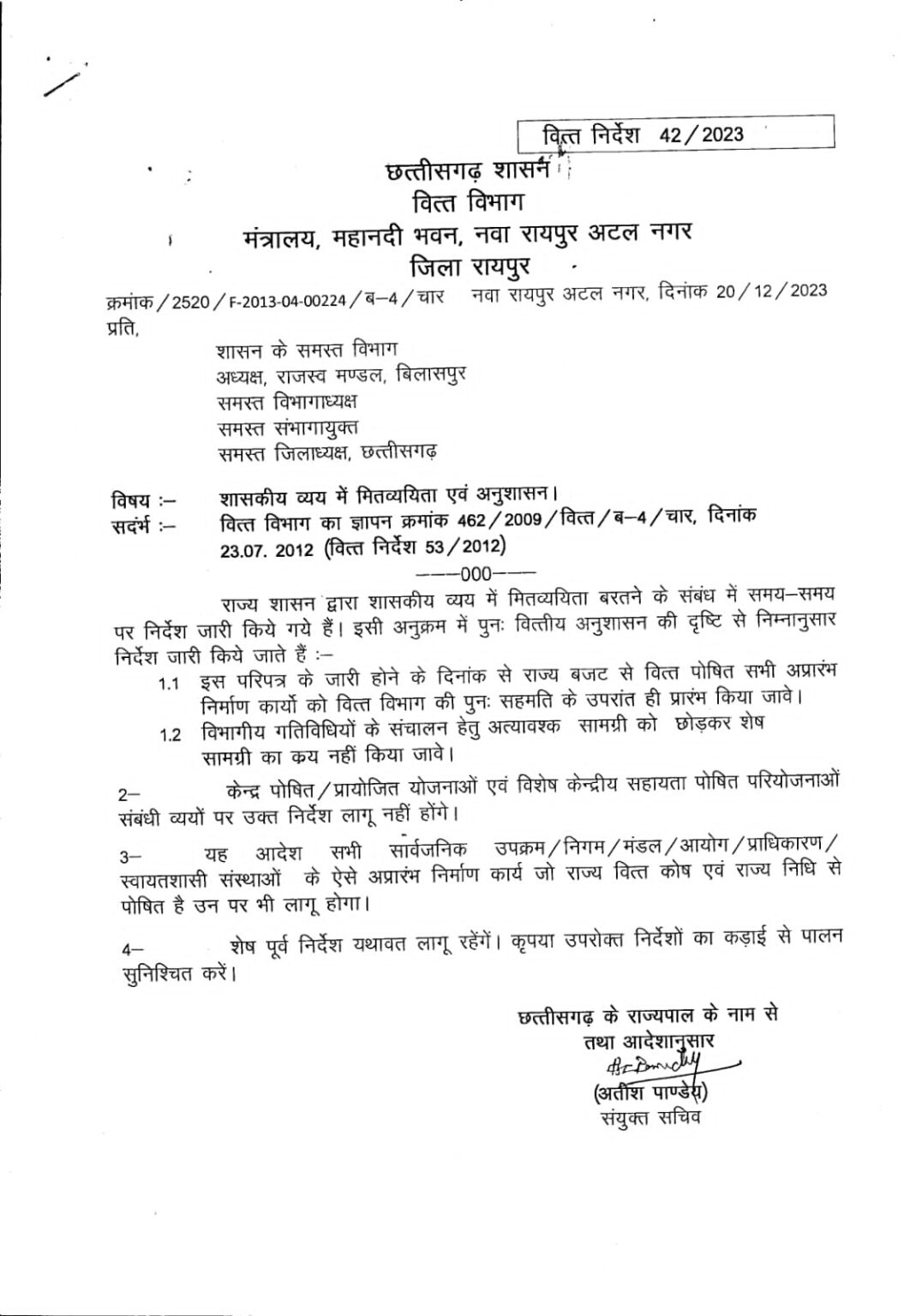 हालांकि केंद्र पोषित व प्रायोजित योजनाओं व विशेष केंद्रीय पोषित योजनाओं पर ये निर्देश नहीं लागू होगा। ये आदेश उन सभी सार्वजनिक उपक्रम, निगम, मंडल, आयोग, प्राधिकरण पर भी लागू होगा, जहां राज्य बजट या निधि से पैसे खर्च किये जाने हैं।