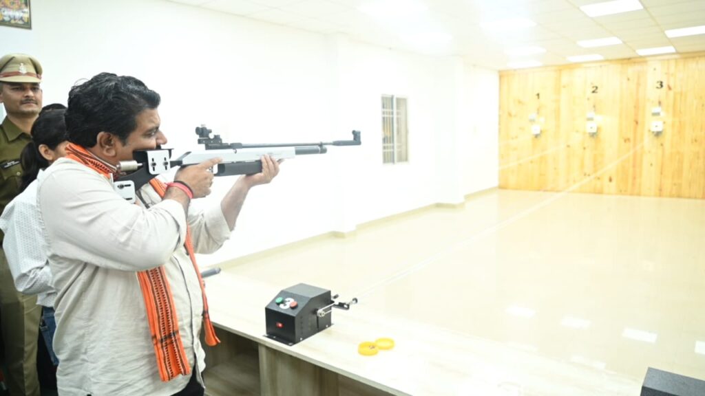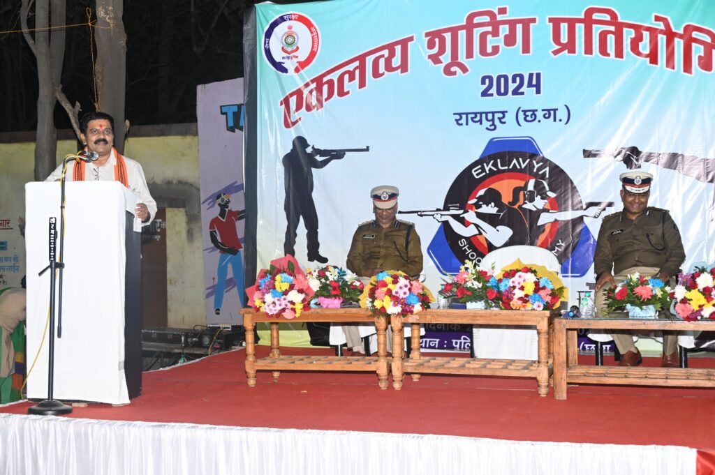 रायपुर। उपमुख्यमंत्री एवं गृहमंत्री विजय शर्मा आज रक्षित केंद्र रायपुर स्थित एकलव्य शूटिंग केंद्र एवं शस्त्र प्रशिक्षण केंद्र में छत्तीसगढ़ के पुलिस एवं प्रशासनिक अधिकारियो के लिए आयोजित एकलव्य शूटिंग प्रतियोगिता का शुभारंभ किया। इस प्रतियोगिता में राज्य के आईएएस, आईपीएस, आईएफएस सहित पुलिस के अधिकारी एवं जवान मिलाकर लगभग 130 लोग इस एयर रायफल, एयर पिस्टल प्रतिस्पर्धा में भाग ले रहें हैं। इस दौरान उपमुख्यमंत्री विजय शर्मा ने कहा कि यह प्रतियोगिता एक नवाचार और अभ्यास है। इस प्रतियोगिता के माध्यम से भविष्य में बड़े आयोजनो में हम जरूर मेडल जीतकर आएंगे। उन्होंने कहा कि टारगेट शूटिंग न केवल आपको सक्रिय रखने के लिए एक शानदार खेल है बल्कि यह आत्म-सम्मान आत्मविश्वास भी पैदा करता है। शूटिंग खेल को अपनाने से कई शारीरिक लाभ होते हैं। बढ़ी हुई ताकत सहन शक्ति संतुलन हाथ और आंख समन्वय और बढ़िया कौशल इसके कुछ लाभ हैं। इस अवसर पर पुलिस महानिरीक्षक रायपुर अमरेश मिश्रा, पुलिस अधीक्षक संतोष सिंह सहित पुलिस एवं प्रतिभागी अधिकारी उपस्थित थे।