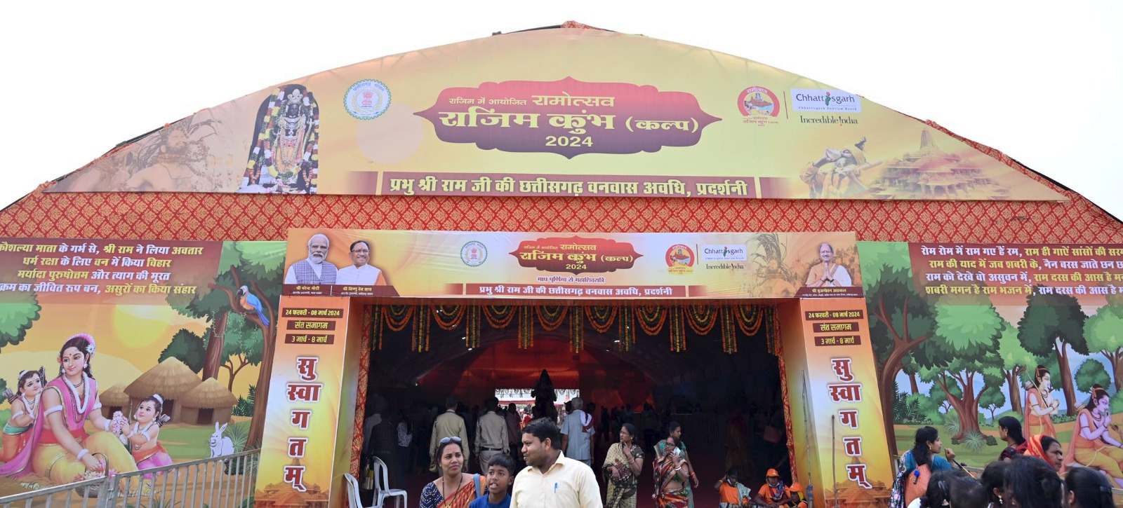 रायपुर। धर्मस्व एवं संस्कृति मंत्री बृजमोहन अग्रवाल की पहल से राजिम कुंभ की भव्यता 5 वर्ष बाद पुनः लौटी है। राजिम कुंभ कल्प 2024 मेला का आयोजन इस वर्ष रामोत्सव की थीम पर मनाया जा रहा है। राजिम कुंभ मेला स्थल में प्रभु श्री राम के जीवन चरित्र और उनके छत्तीसगढ़ वनवास अवधि पर आधारित जीवंत झांकी का प्रदर्शन किया जा रहा है, जोकि मेला में पहुंचने वाले समस्त श्रद्धालुओं को अपनी ओर आकर्षित कर रहा है। लोग धार्मिक सद्भाव और मर्यादा पुरुषोत्तम श्री राम के आदर्शाे को अनुभव कर इस झांकी आनंद उठा रहे हैं।