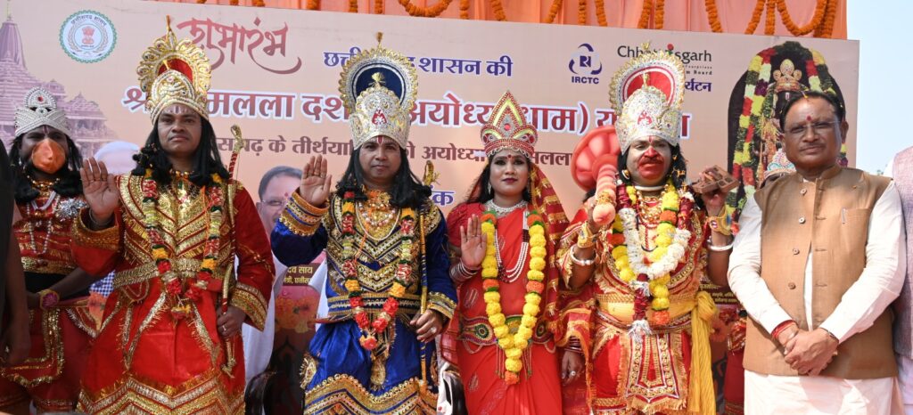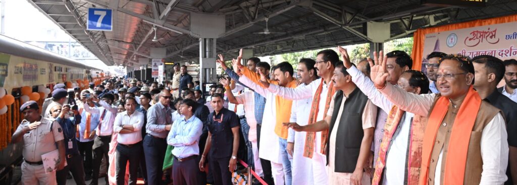 रायपुर- ‘‘रामकाज किन्हें बिनु मोहि कहां विश्राम‘‘, मुख्यमंत्री विष्णु देव साय के नेतृत्व में छत्तीसगढ़ सरकार मानस की इन पंक्तियों के अनुरूप श्रीराम के आदर्शों के अनुरूप काम कर रही है। मर्यादा पुरुषोत्तम श्रीराम के निरंतर आदर्शों से सीख लेते हुए राज्य के नागरिक तथा तंत्र एक आदर्श समाज का निर्माण कर सकें, इसके लिए श्रीरामलला दर्शन योजना आरंभ की गई। मुख्यमंत्री श्री साय ने श्री रामलला दर्शन योजना के तहत आज राजधानी रायपुर के रेल्वे स्टेशन से अयोध्या जाने वाली विशेष ट्रेन को हरी झण्डी दिखाकर रवाना किया। ट्रेन में 850 राम भक्तों की टोली जय श्रीराम का नारा लगाते हुए अयोध्या के लिए रवाना हुआ। इस मौके पर उप मुख्यमंत्री विजय शर्मा, कृषि मंत्री रामविचार नेताम, खाद्य मंत्री दयाल दास बघेल उपस्थित रहे। मुख्यमंत्री श्री साय श्री रामलला दर्शन के लिए जाने वाली विशेष ट्रेन को आज सुबह 10.30 बजे रायपुर रेलवे स्टेशन के प्लेटफार्म नम्बर 07 से हरी झंडी दिखाकर रवाना किया। इस विशेष ट्रेन में रायपुर संभाग के सभी 05 जिलों के 850 श्रद्धालुओं को अयोध्या धाम का दर्शन करायेगा।