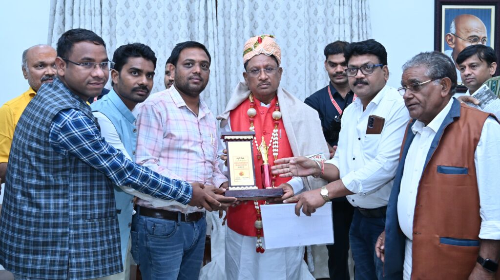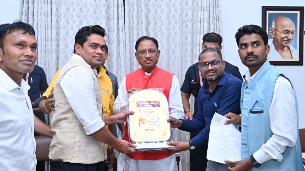 रायपुर। छत्तीसगढ़ श्रमजीवी पत्रकार संघ के प्रतिनिधि मंडल ने आज यहां मुख्यमंत्री विष्णुदेव साय से उनके निवास कार्यालय में मुलाकात की। छत्तीसगढ़ के विभिन्न जिलों से आए हुए प्रतिनिधि शामिल हुए। इस अवसर पर छत्तीसगढ़ श्रमजीवी पत्रकार संघ के प्रदेश अध्यक्ष अरविंद अवस्थी के साथ विश्व दीपक राई, मनोज मिश्रा,राम साहू, मोहन तिवारी, जितेंद्र शुक्ला , रिजवान खान , शिव वर्मा, मनोज तिवारी, देवेंद्र यादव ,समीर गुप्ता, मोहन मानिकपुरी, राकेश पाठक ,लोकेश जैन, नंदकिशोर गौतम, अजय सिंह ,सुनील आनंद , नारायण तिवारी, रामाधार पटेल, संतोष देवांगन ,युवराज सिंह, स्वप्निल तिवारी सहित बड़ी संख्या में श्रमजीवी पत्रकार संघ के सदस्यगण उपस्थित थे। इस अवसर पर जनसंपर्क विभाग के आयुक्त मयंक श्रीवास्तव भी उपस्थित थे।