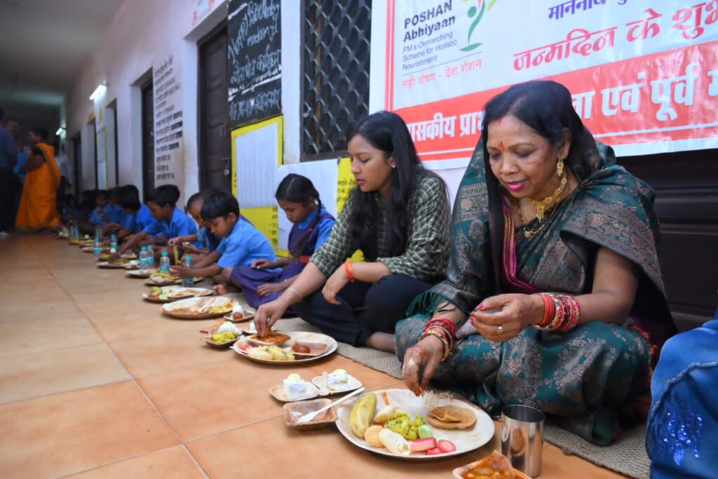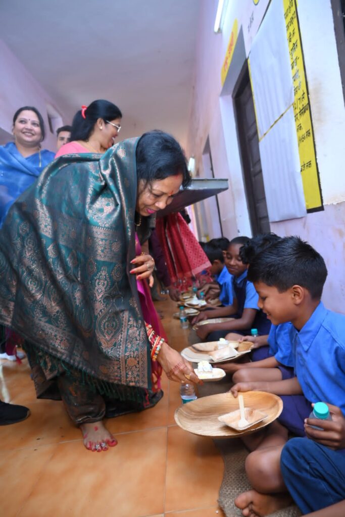 रायपुर। अपने जन्मदिन के अवसर पर आयोजित न्योता भोज में मुख्यमंत्री विष्णु देव साय की धर्मपत्नी कौशल्या साय ने अपने हाथों से बनी खीर और केक बच्चों को खिलाई और उन्हें ढेर सारा स्नेह दिया। न्योता भोज का आयोजन सरदार प्रीतम सिंह सैनी प्राथमिक एवं पूर्व माध्यमिक शाला श्यामनगर में और शासकीय बालिका गृह खम्हारडीह में किया गया। उन्होंने अपने परिवार जनों और बच्चों के साथ न्योता भोज भी किया।
