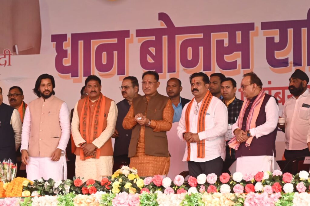 रायपुर- आज मुख्यमंत्री विष्णु देव साय ने छत्तीसगढ़ राज्य के 11 लाख 76 हजार 815 किसानों को 3 हजार 7 सौ 16 करोड़ रुपए के बकाया बोनस राशि का वितरण किया। इस दौरान मुख्यमंत्री ने दो और गारंटी के जल्द पूरा करने के संकेत दिये। मुख्यमंत्री ने अपने संबोधन में कहा कि विवाहित महिलाओं के लिए महतारी वंदन योजना के अंतर्गत हर माह ₹1000 देने का प्रावधान भी हमने अनुपूरक बजट में कर दिया है। अब माताओं बहनों के खाते में साल में ₹12000 जाएगा। आपको बता दें कि चुनाव में महतारी वंदन योजना को भाजपा की जीत के लिए तुरुप का इक्का कहा गया। वोटिंग के दौरान महिलाओं ने ज्यादा वोट बीजेपी के लिए किया था।