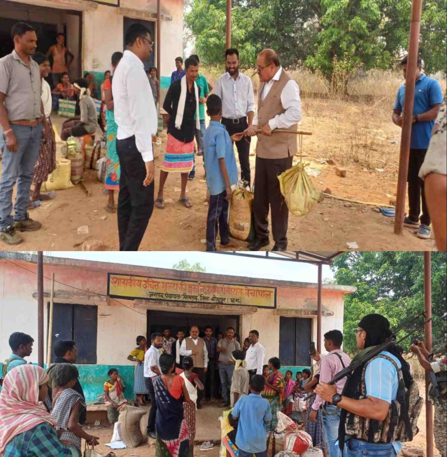 राशन दुकान में हितग्राहियों के राशन उनके 6-7 किलोमीटर दूर स्थित गांव तक पहुंचाने के लिए सचिव को तत्काल ट्रेक्टर की व्यवस्था करने निर्देश पर त्वरित कार्यवाही कर राशन ग्राम तिम्मेनार तक पहुंचाया गया. बता दें कि एक 10 वर्ष का बालक भी राशन कांवर में ले कर जाने वाला था. निरिक्षण के दौरान SDM भैरमगढ़,EE PWD, सीईओ जनपद भैरमगढ़ उपस्थित रहे.