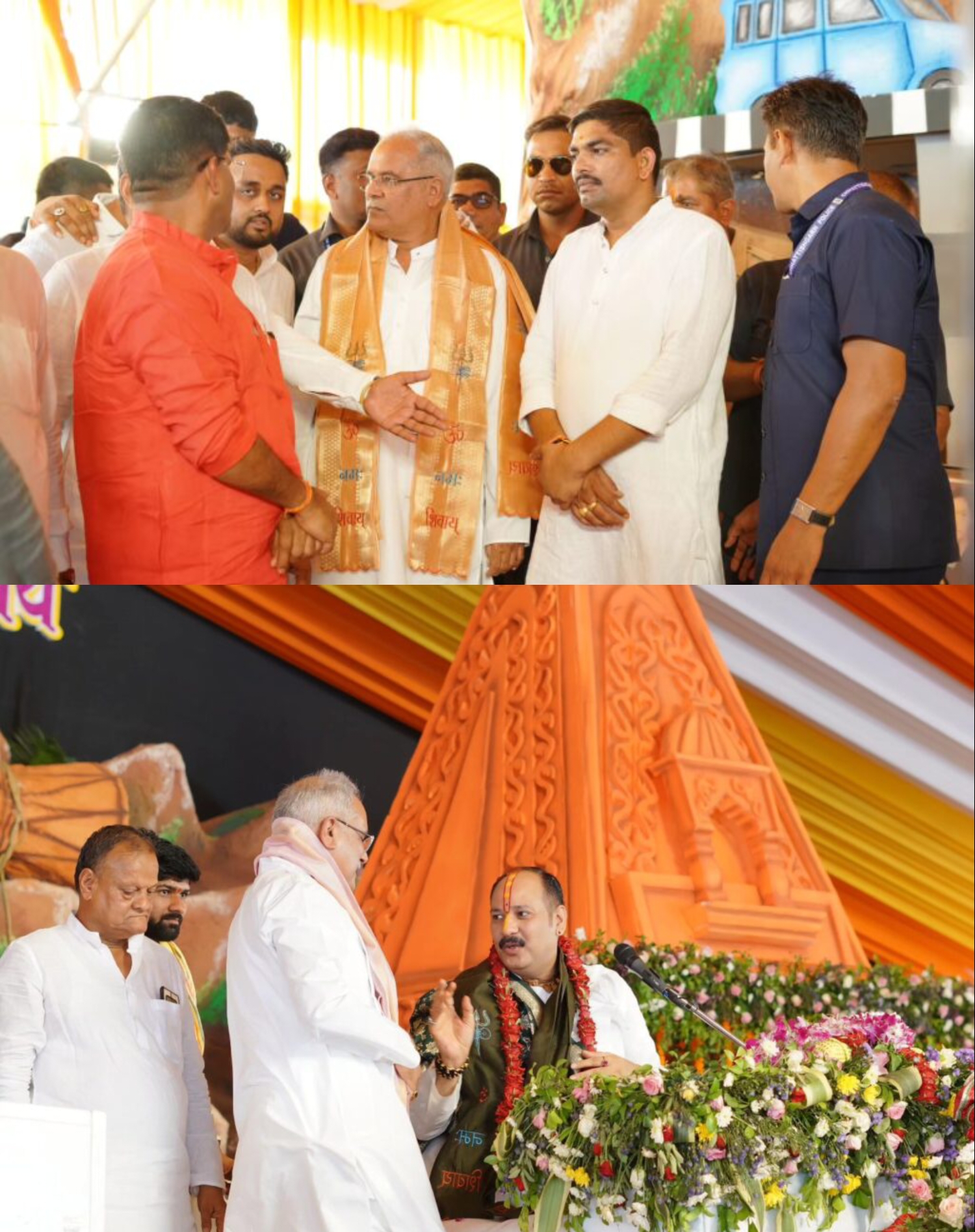 रायपुर- श्री समर्पण शिव महापुराण कथा स्थल अमलेश्वर में छत्तीसगढ़ के पूर्व मुख्यमंत्री और पाटन विधानसभा के विधायक भूपेश बघेल पहुंचे, यहां उन्होंने कथा का रसपान करते हुए श्रद्धालुओं के साथ इस पावन अवसर का आनंद लिया उन्होंने शिव महापुराण की महत्ता और इसकी शिक्षा पर अपने विचार व्यक्त किये, पूर्व मुख्यमंत्री भूपेश बघेल ने कहा कि अमलेश्वर में शिव महापुराण कथा के आयोजन से अमलेश्वर की धारा पावन हो गई है और पंडित प्रदीप मिश्रा के मुखारविंद से निकलने वाले एक एक शब्द इस धारा में गूंजाईमान हो रहे हैं, उन्होंने शिव महापुराण कथा के आयोजन के लिए आयोजन समिति के तमाम सदस्यों को बधाई दी और दुर्ग जिले में इतने बड़े आयोजन के लिए उन्हें धन्यवाद दिया, इस मौके पर पूर्व मुख्यमंत्री ने पंडित प्रदीप मिश्रा से आशीर्वाद भी प्राप्त किया।